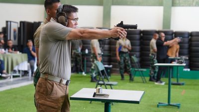 Anas terlihat mengenakan kemeja putih dan celana jin biru saat keluar dari Lapas Sukamiskin, Selasa (11/4/2023). Dia kemudian menyalami para loyalisnya.
