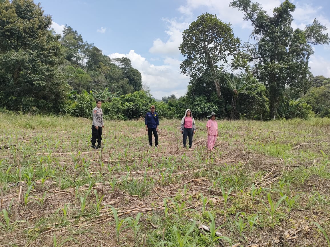 Landak -Untuk mengetahui secara langsung perkembangan tanaman jagung tumbuh dengan baik , Bintara Penggerak Ketahanan Pangan Desa Parigi Bripka Ria Latif melaksanakan pengecekan Progres Penanaman Jagung milik kelompok Tani Nek Tune di Desa Parigi Kecamatan Mempawah Hulu Kabupaten Landak. Kamis 26/6/2025