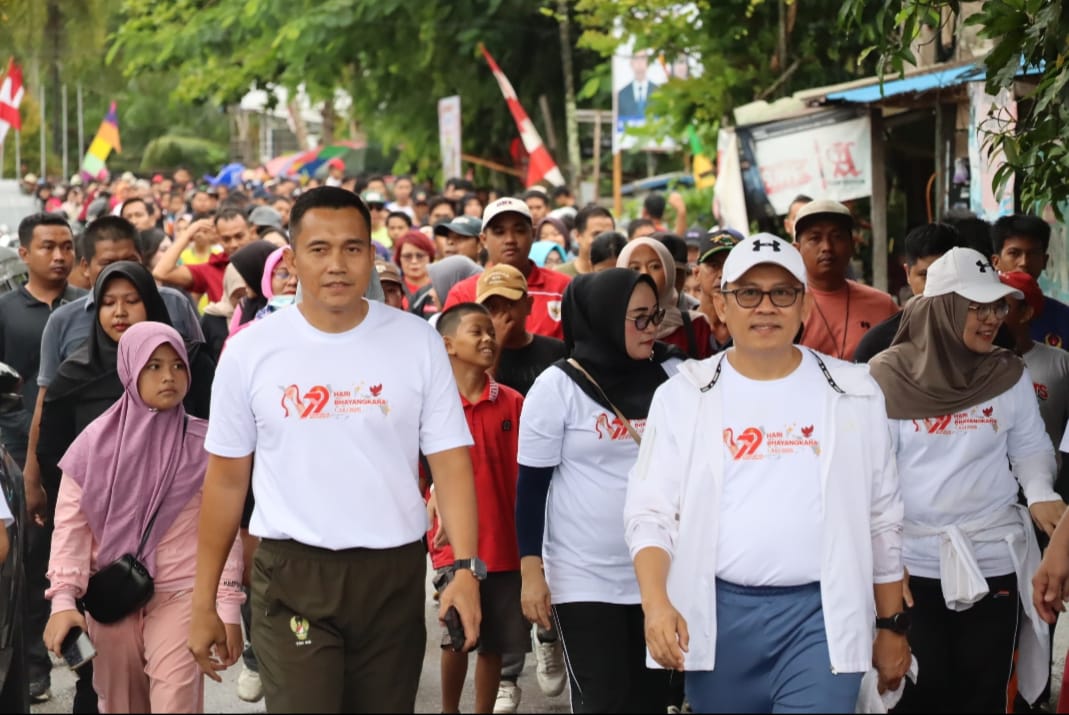 Muara Teweh- Dalam rangka memperingati Hari Ulang Tahun Bhayangkara ke-79, Komando Distrik Militer 1013 turut ambil bagian dalam acara jalan sehat yang diselenggarakan oleh Polres Barito Utara, Sabtu pagi (28/6).