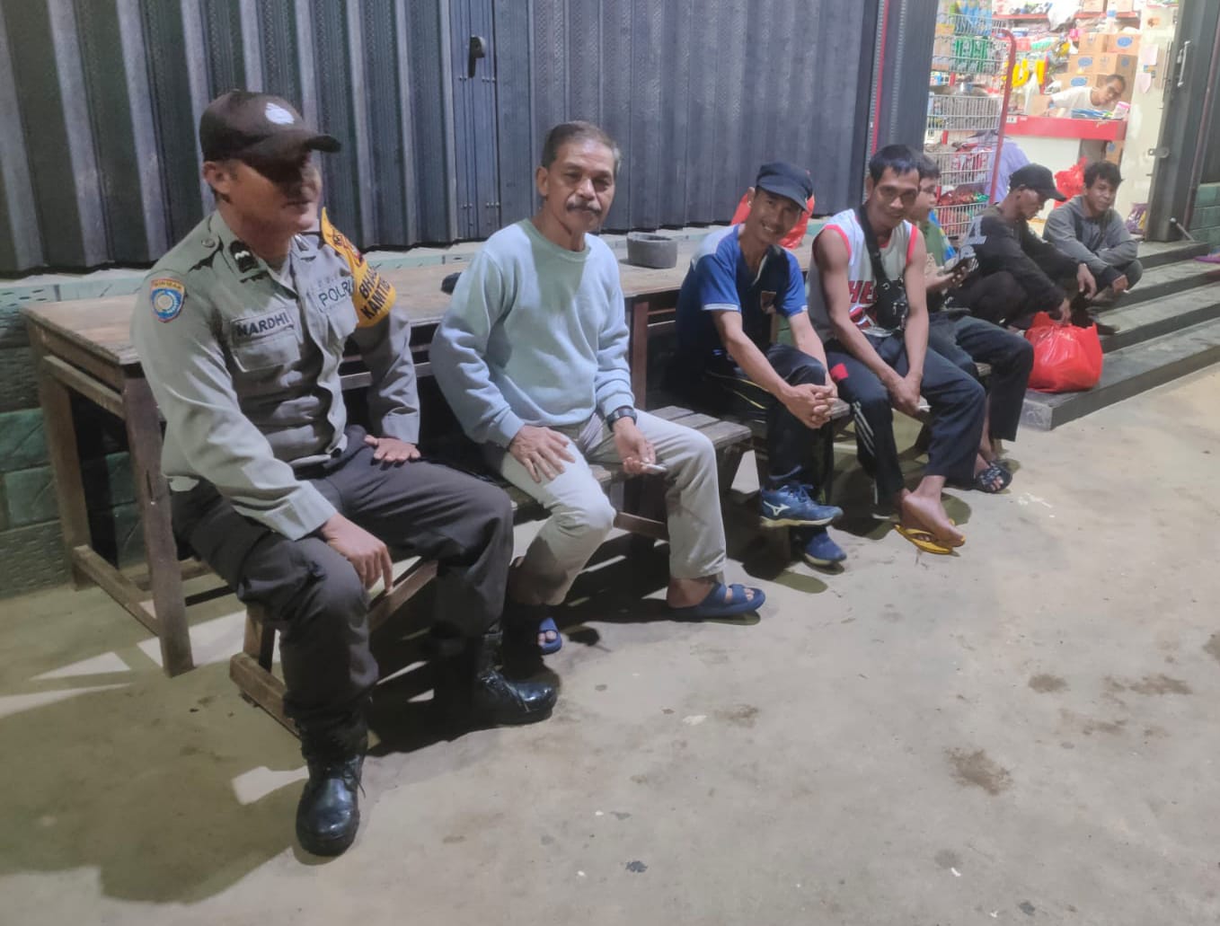 Di tempat lain, sejumlah warga yang sedang berkumpul di depan toko sembako juga tak luput dari sambutan hangat petugas. Mereka tampak antusias saat berbincang dengan Bhabinkamtibmas yang turut serta dalam patroli, membahas berbagai hal seputar keamanan lingkungan dan aktivitas warga malam hari.
