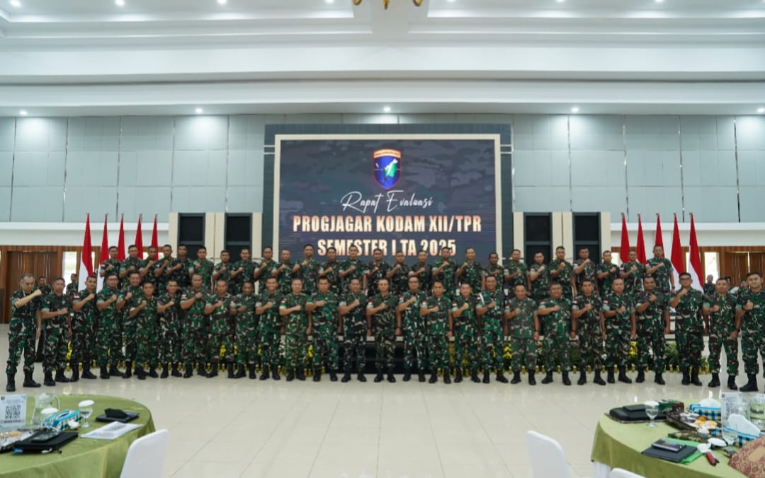 Kubu Raya – Guna mengidentifikasi hambatan serta capaian yang diraih oleh satuan, Kodam XII/Tanjungpura menggelar Rapat Evaluasi Program Kerja dan Anggaran (Progjagar) Kodam XII/Tpr Semester I TA 2025. Bertempat di Aula Sudirman, Makodam XII/Tpr