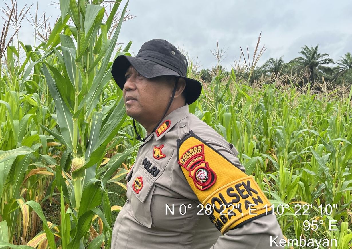 Kapolsek Kembayan menyampaikan bahwa pengecekan dilakukan untuk memantau pertumbuhan tanaman pada lahan Demplot I, memastikan tanaman berkembang sesuai dengan tahapan yang telah direncanakan.