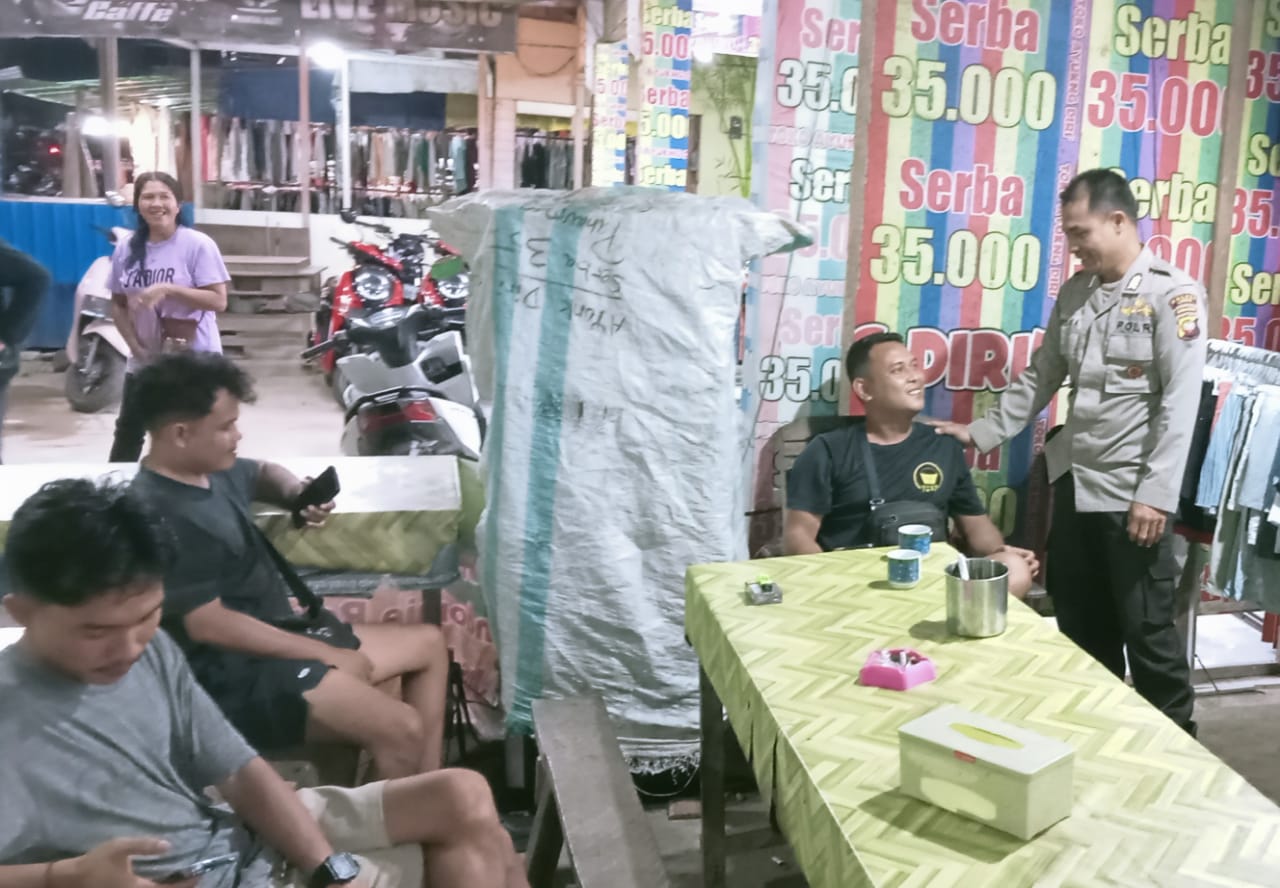 Landak ~Suasana malam di Pasar Sengah Temila tampak berbeda dari biasanya. Di tengah kesibukan pedagang dan pengunjung, hadir sosok berseragam cokelat yang dengan ramah menyapa satu per satu warga. Kegiatan ini merupakan bagian dari patroli malam yang rutin dilakukan oleh jajaran Polsek Sengah Temila dalam rangka menjaga keamanan dan ketertiban masyarakat (Kamtibmas)., ” Minggu (20/7/2025)
