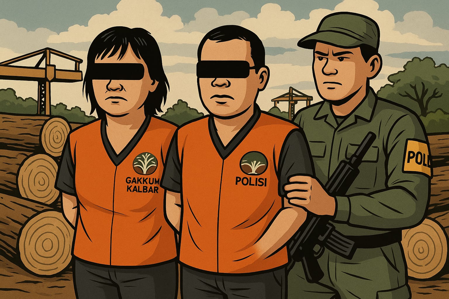 Ketapang – Dua aktor intelektual dalam kasus pembalakan liar di Ketapang, Kalimantan Barat, akhirnya ditangkap oleh Balai Penegakan Hukum (Gakkum) Lingkungan Hidup dan Kehutanan Wilayah Kalimantan. Keduanya adalah MHW dan SH alias ANT, masing-masing menjabat sebagai Direktur dan Komisaris PT BR, perusahaan yang diduga menjadi pelaku utama dalam distribusi kayu ilegal dari kawasan hutan produksi terbatas.