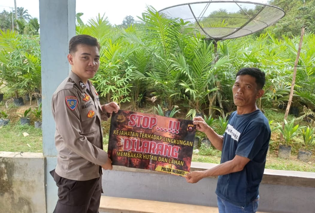 Kapolsek meranti Ipda Uwes SH menyampaikan memasuki pergantian musim kemarau memerintahkan personilnya untuk terus melakukan sosialisasi edukasi dampak karhutla kepada warga masyarakat di masing masing wilayah binaanya.