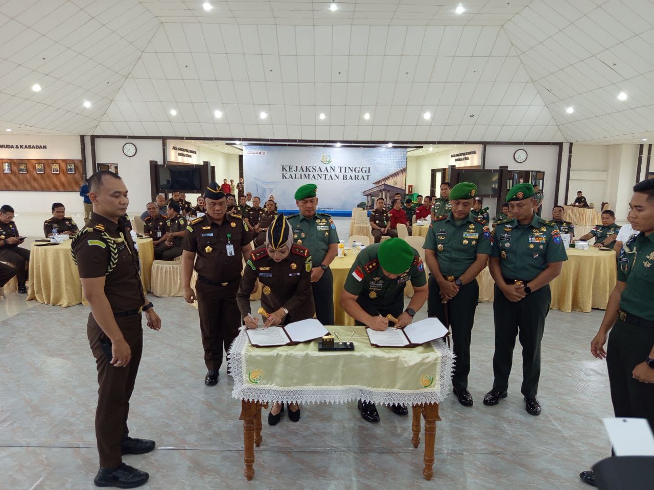 Penandatanganan naskah perjanjian dilakukan langsung oleh Pangdam XII/Tanjungpura Mayjen TNI Jamallulael, S.Sos., M.Si. dan Kepala Kejati Kalbar Ahelya Abustam, S.H., M.H.
