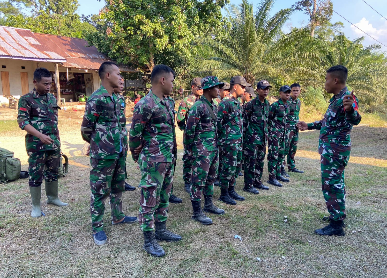 Sintang — Komandan Pleton (Danton) Satgas TNI Manunggal Membangun Desa (TMMD) ke-125 Kodim 1205/Sintang Letda Arm Firnaldi H Lubis menunjukkan kesiapan dan semangat tinggi dalam memimpin apel pagi anggota satgas di lokasi pelaksanaan TMMD, Jum’at (25/07/2025).