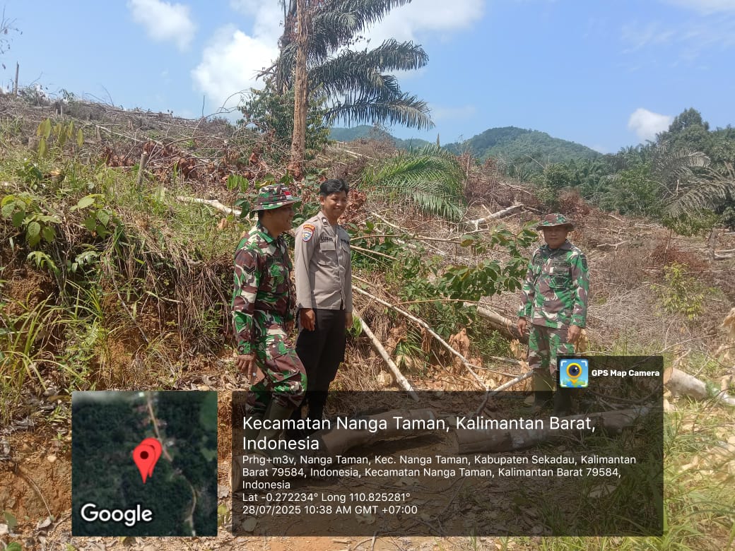 Sekadau- Untuk menjaga keamanan lingkungan dari kebakaran hutan dan lahan (karhutla) dan pembalakan liar, Babinsa sertu ruslan u. Kecamatan nanga taman beserta anggota Polsek nanga taman melakukan patroli.