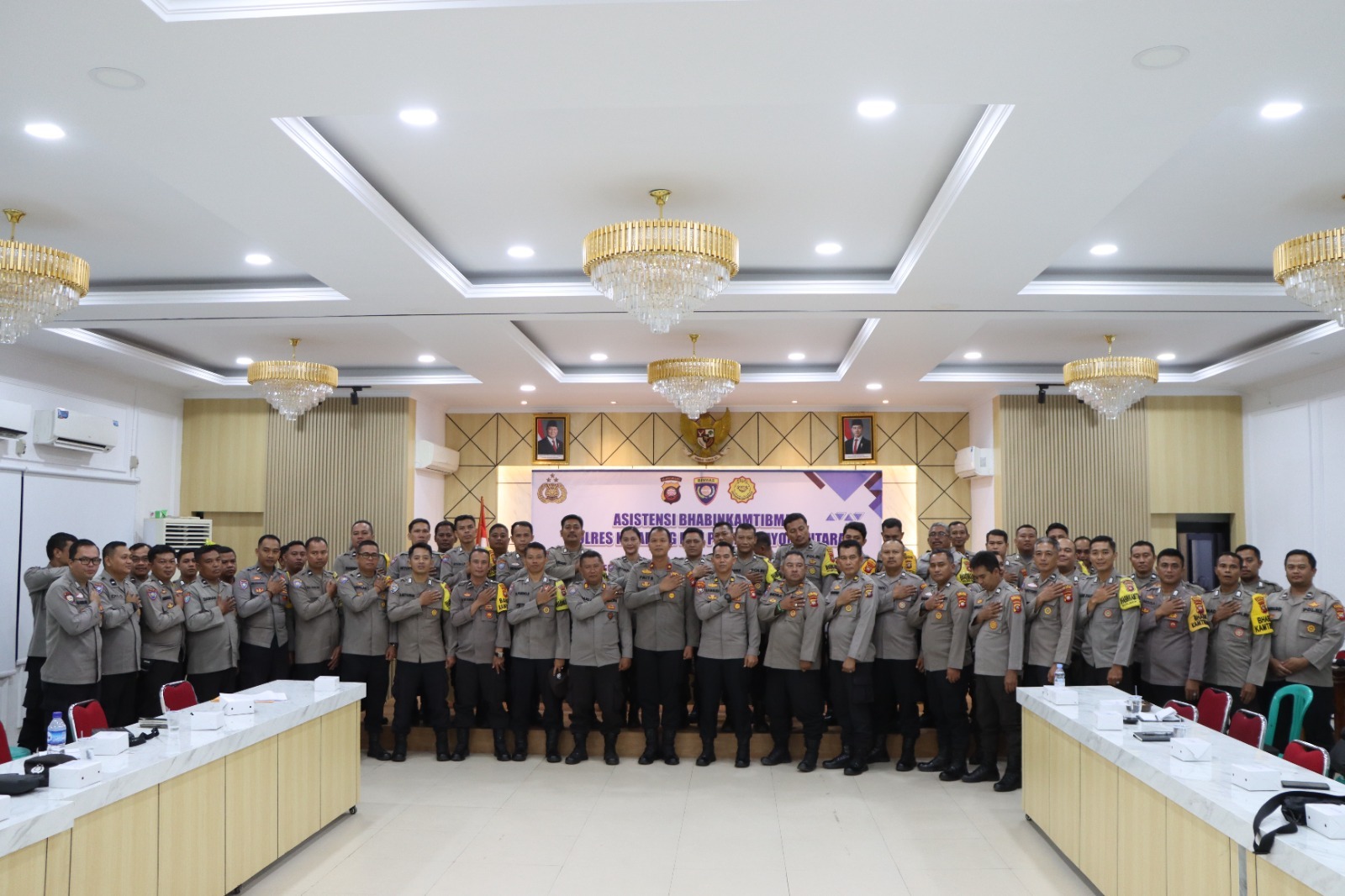 “ Peran Bhabinkamtibmas sangat krusial. Di era digital ini, kita dituntut lebih responsif terhadap dinamika sosial di lingkungan masyarakat. Bangun komunikasi yang baik, lakukan deteksi dini, dan tetap jaga netralitas serta profesionalisme dalam menjalankan tugas,” tegasnya. Usai sesi materi, kegiatan dilanjutkan dengan dialog interaktif antara tim Ditbinmas dengan para Bhabinkamtibmas. Dalam sesi ini, beberapa perwakilan anggota Bhabinkamtibmas menyampaikan kendala yang dihadapi di lapangan, serta memberikan masukan terkait peningkatan dukungan logistik dan penguatan koordinasi lintas sektor. Kegiatan asistensi ditutup dengan foto bersama serta penyerahan dokumen pedoman kerja Bhabinkamtibmas yang telah diperbaharui sesuai dengan kebijakan terbaru dari Mabes Polri.
