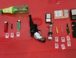 “ Saat melakukan penggeledahan di rumah pelaku yang disaksikan perangkat warga setempat, kami tidak mendapati pelaku berinisial MS (41). Kami hanya mendapati istri pelaku. Namun kami berhasil menemukan sejumlah barang bukti berupa 6 paket plastik bening yang berisi kristal putih yang diduga narkoba jenis sabu, bong (alat hisap sabu), timbangan digital, sebuah sendok sabu, serta sebuah senjata api rakitan jenis revolver ” Papar IPTU Made.