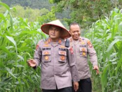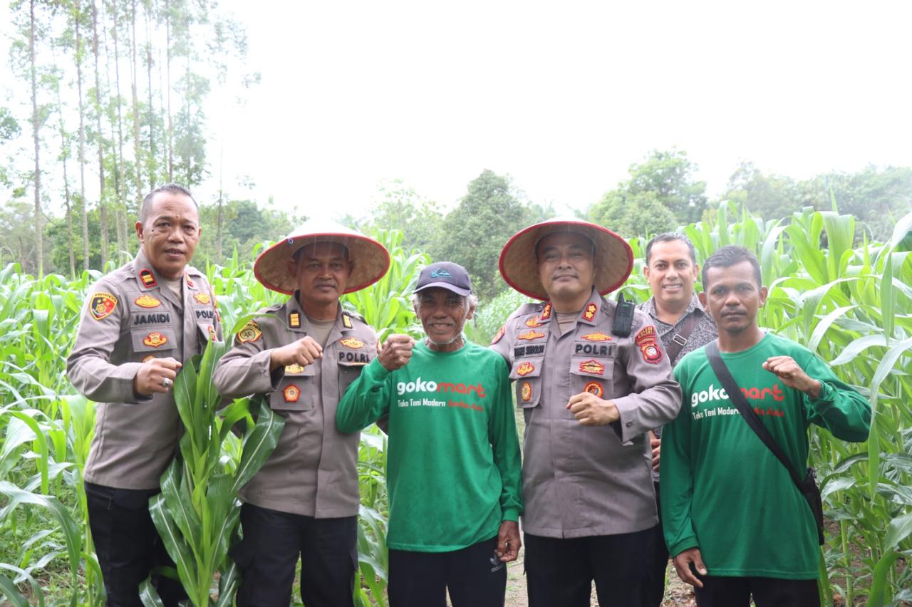 Melawi- Kapolres Melawi AKBP Harris Batara Simbolon, S.I.K., S.H., M.Tr.Opsla di dampingi Kabag SDM Kompol Widaya, Kasie Propam Ipda Jefri Manurung, S.H., Kapolsek Belimbing Iptu Jamidi, Personel Polsek Belimbing, Polisi Penggerak Ketahanan Pangan Aipda Margorentus, S.H., M.Jg melalukan pemantauan progres perkembangan penanaman jagung Kelompok Tani (Poktan) Karunia Tani di kelola bapak Yudi Priyanto di Dusun Batu Ampar Desa Batu Ampar Kecamatan Belimbing, Rabu (13/8).
