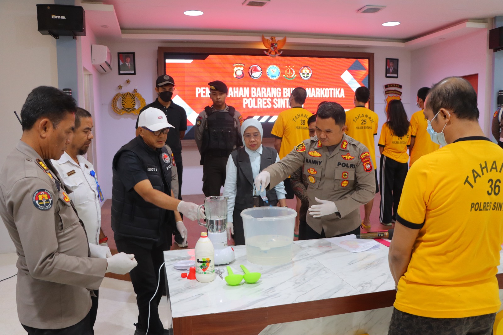 Sintang– Polres Sintang menggelar press release dan pemusnahan barang bukti hasil pengungkapan kasus peredaran narkoba di wilayah hukum Polres Sintang, Rabu (13/8) Pagi.