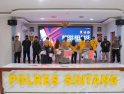 Dari kelima kasus ini Polres Sintang mengamankan 6 (enam) tersangka yang masing-masing berinisial MN (42), FW (27), N (23), TK (47), S (48) dan DDH (31) yang mana dari tangan pelaku petugas menyita total sabu seberat 127.87 gram dan ekstasi sebanyak 601 butir.