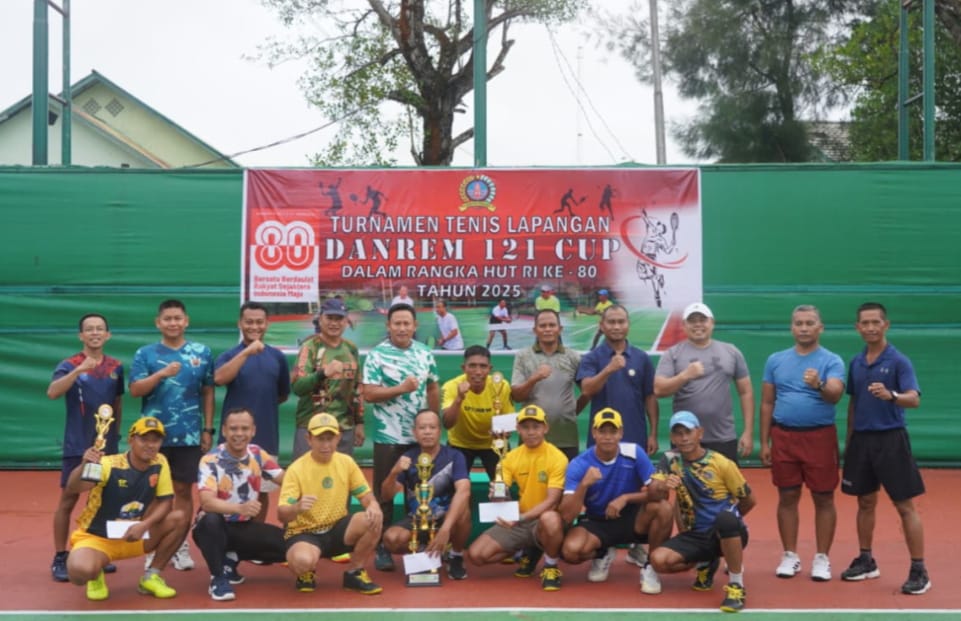 Sintang – Dalam rangka memperingati Hari Ulang Tahun (HUT) ke-80 Kemerdekaan Republik Indonesia (RI), Korem 121/Abw menggelar Turnamen Tenis Lapangan Danrem 121/Abw Cup, pada Kamis (14/08/2025).