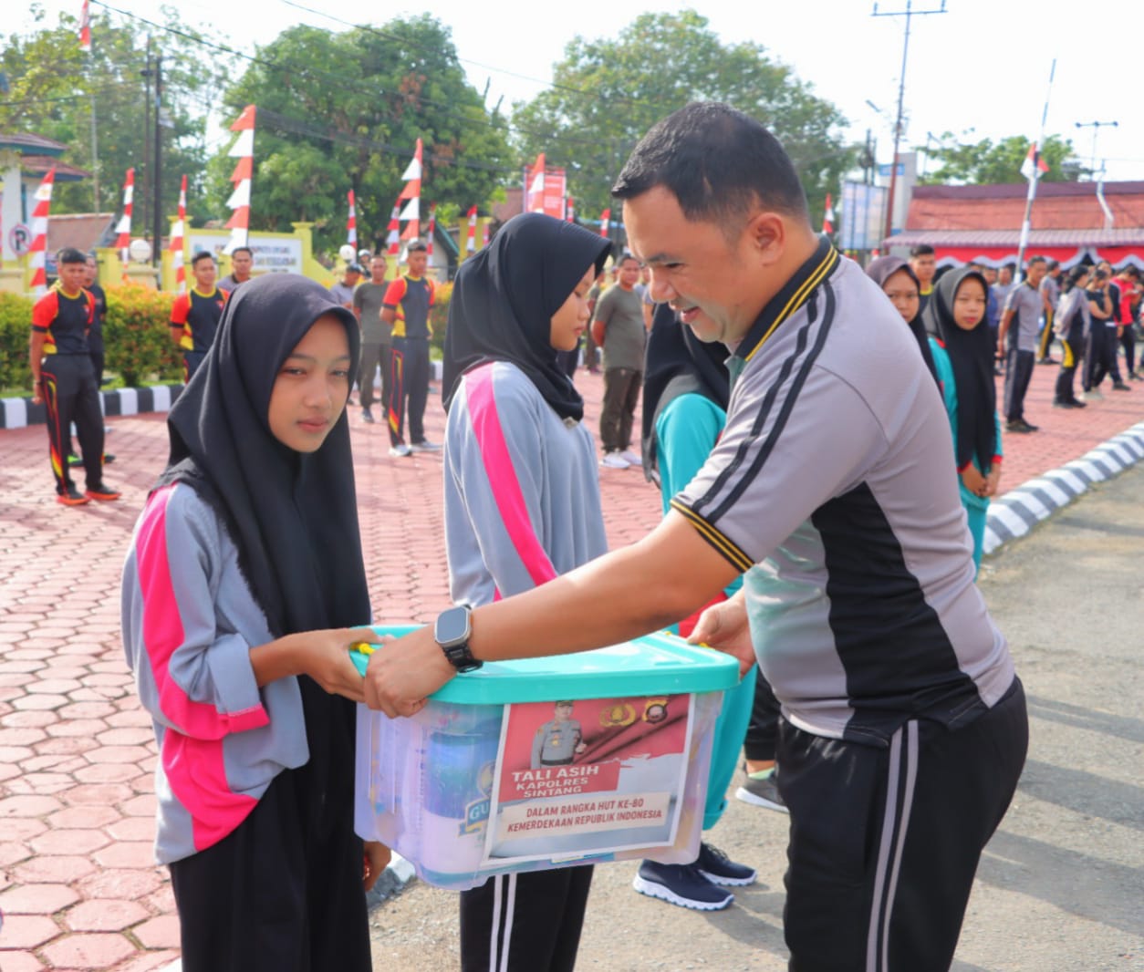 Sintang- Dalam rangka memeriahkan Hari Ulang Tahun Republik Indonesia ke-80, Polres Sintang menggelar kegiatan olahraga bersama, Jumat (15/8) Pagi.