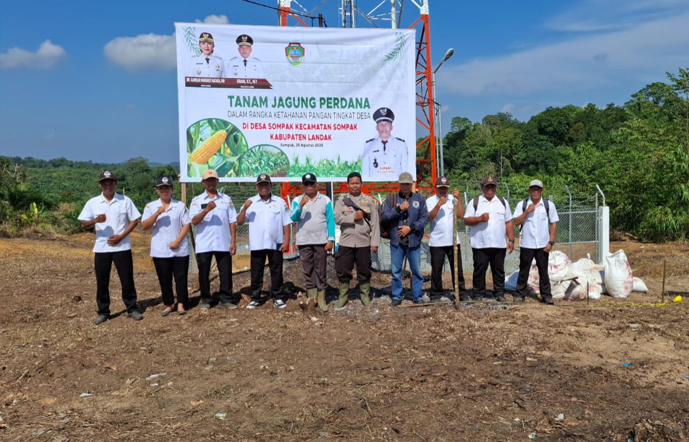 Landak –  Dalam rangka mendukung program Pemerintah Pusat di sektor ketahanan pangan nasional serta terwujudnya Program pemerintah kabupaten Landak Pemdes Desa Sompak laksanakan Penanaman Jagung dilokasi Demplot Desa sompak . Rabu 27/8/2025