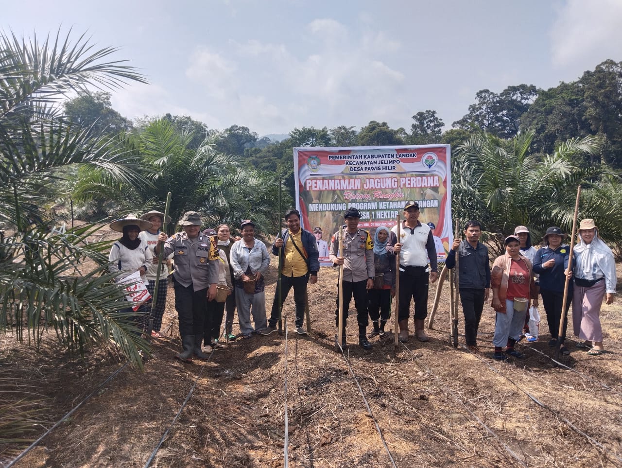 “Ini sesuai dengan Instruksi Bupati Landak Nomor: 400.10.2.4/752/DPMPD-C Tahun 2025, tentang penanaman jagung di kabupaten landak dalam rangka mendukung program ketahanan pangan dan upaya pemerintah untuk mencapai target Nasional swasembada pangan jagung pada tahun 2025. Yang mana harus ditanami dengan luas minimal ± 1 Hektare untuk 1 Desa.” Terang Kapolsek