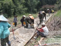 Personel Pos Pamtas Sei Mawang sambil menjalin komunikasi tampak semangat bergotongroyong dengan masyarakat mengecor jalan setapak menuju areal pemakaman. Masyarakat Sei Mawang terbantu dengan kehadiran TNI di wilayahnya.