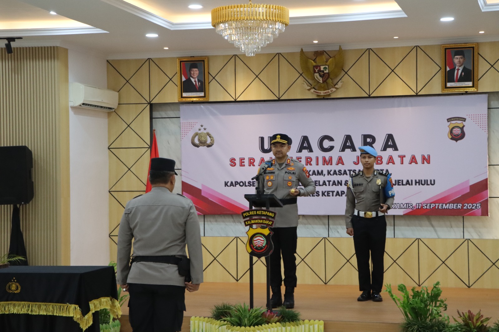 Ketapang- Kapolres Ketapang, AKBP Muhammad Harris, S.H., S.I.K., M.I.K., CPHR., memimpin upacara serah terima jabatan (sertijab) Kasat Samapta, Kasat Intelkam, Kapolsek Matan Hilir Selatan dan Kapolsek Jelai Hulu. Upacara sertijab tersebut digelar di Aula Mapolres Ketapang di Jalan Brigjend Katamso Nomor 01 Ketapang, Kamis pagi (11/09/2025).