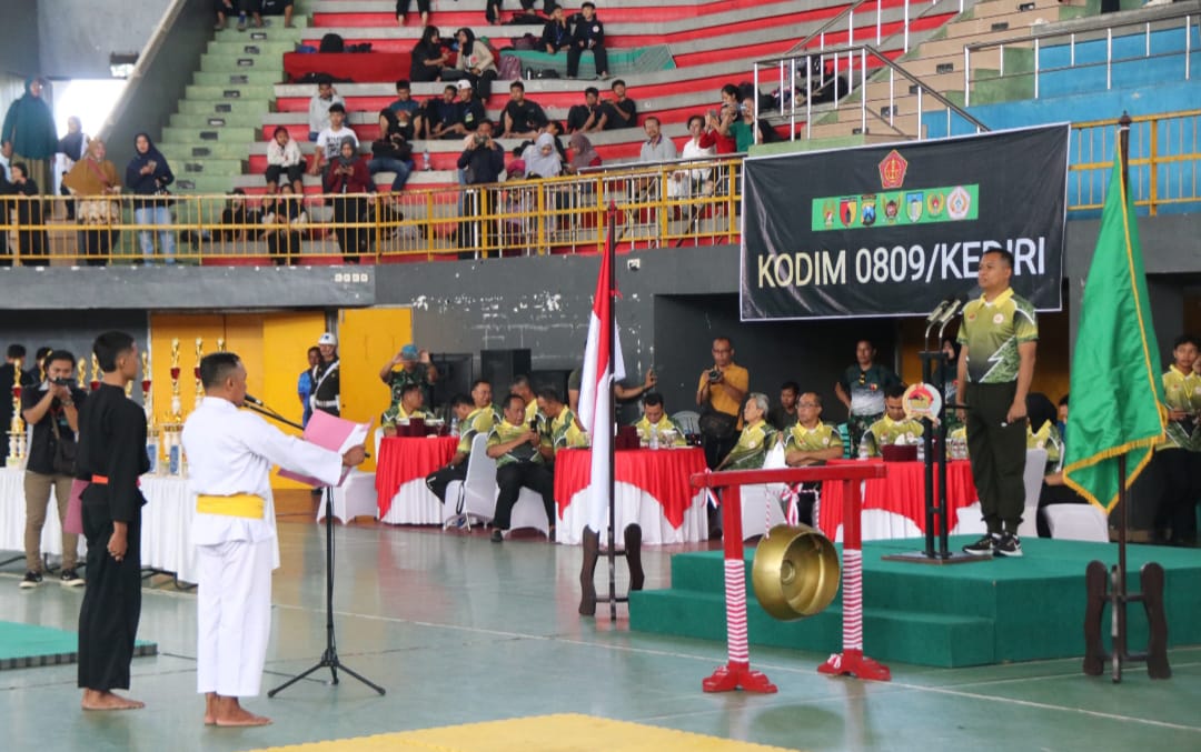 Kediri – Komando Distrik Militer (Kodim) 0809/Kediri menyelenggarakan Kejuaraan Pencak Silat Piala Dandim Cup III. Event yang digelar di GOR Joyoboyo, Kelurahan Bandar Kidul, Kecamatan Mojoroto, Kota Kediri pada Jumat (12/9) ini merupakan bagian dari rangkaian peringatan Hari Ulang Tahun (HUT) Tentara Nasional Indonesia (TNI) Ke-80 tahun 2025.