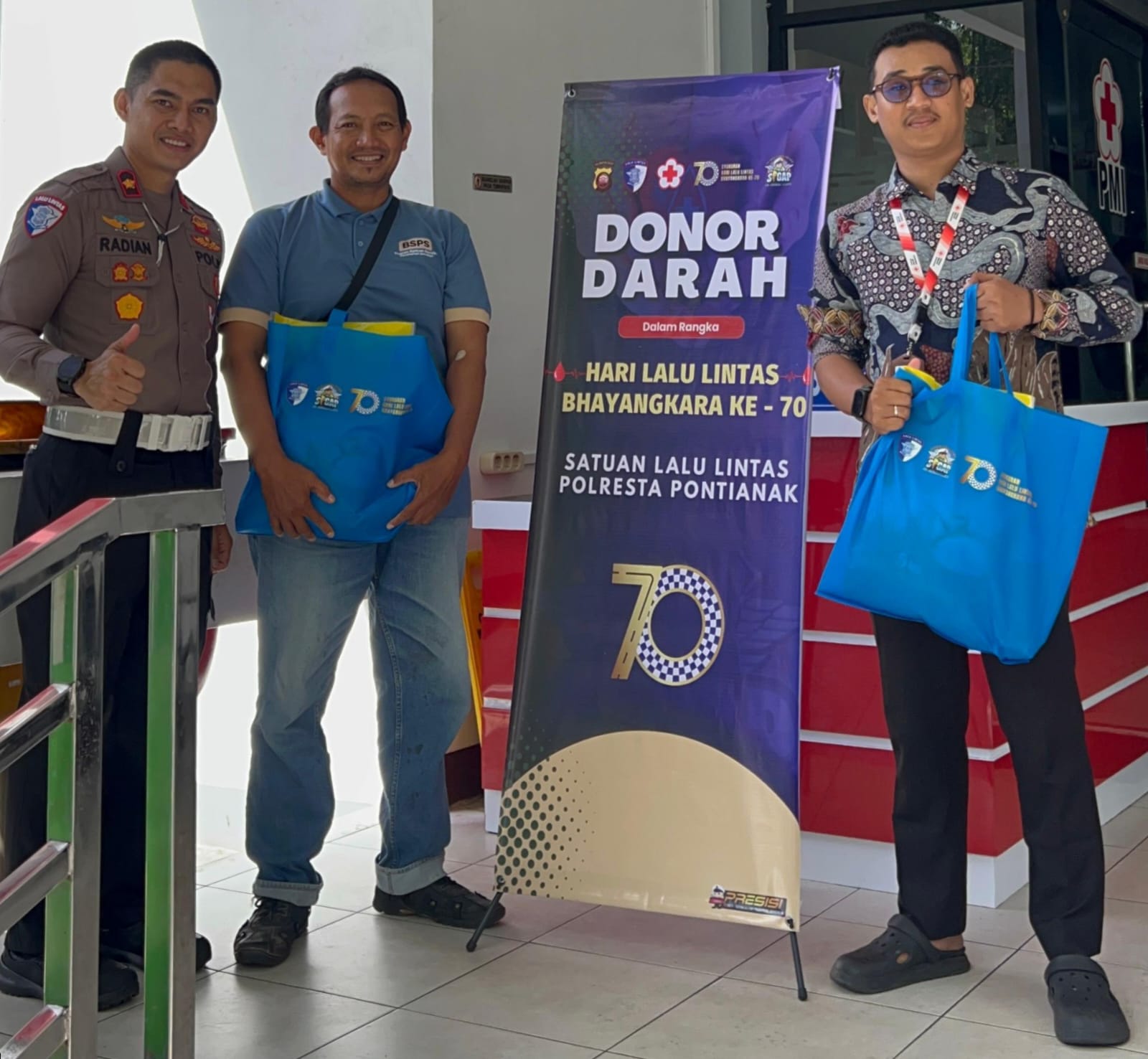 Kapolresta Pontianak, Kombes Pol Suyono, S.I.K., S.H., M.H., melalui Kasat Lantas Polresta Pontianak, Kompol Radian Andy Pratomo S.I.K., M.H., menyampaikan bahwa kegiatan donor darah ini merupakan rangkaian kegiatan dalam memperingati HUT Lalu Lintas ke-70 tahun 2025.