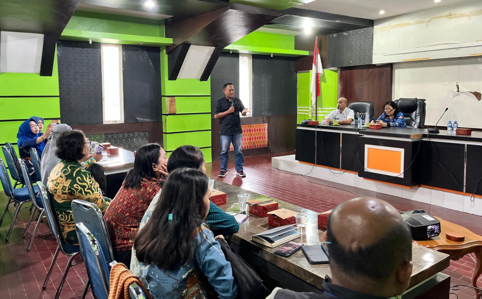 Kegiatan kemudian ditutup dengan sesi diskusi interaktif yang membuka ruang bagi peserta untuk menyampaikan pertanyaan dan pengalaman lapangan terkait isu narkoba.