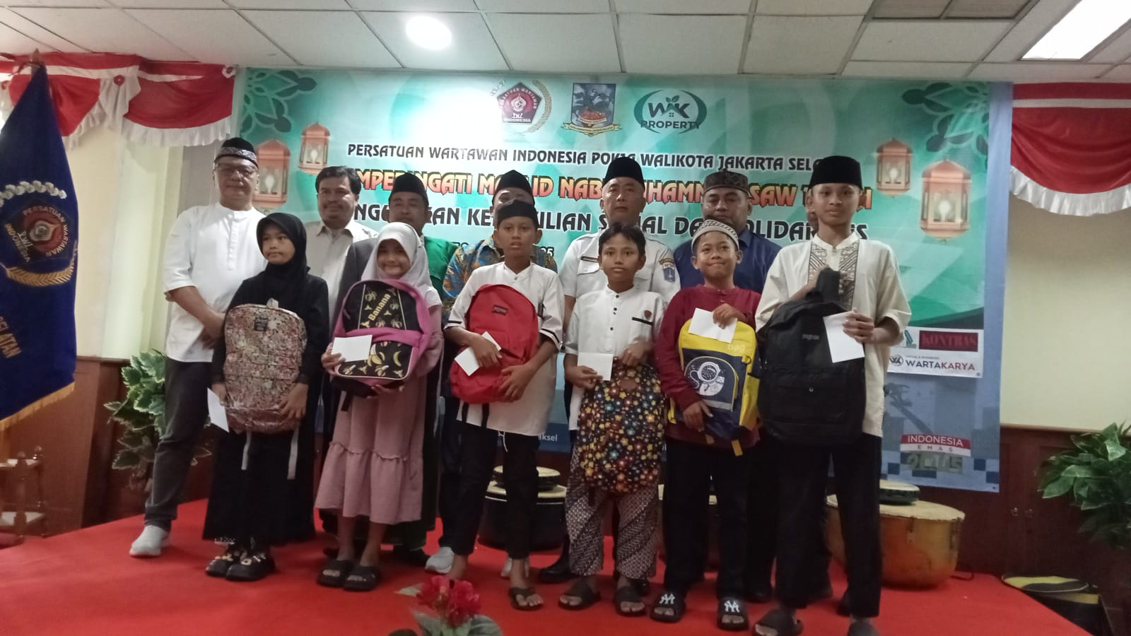 Jakarta, Untuk meneladani sifat-sifat Rasulullah, meningkatkan keimanan dan kecintaan kepada Nabi Muhammad SAW, Persatuan Wartawan Indonesia (PWI) Kelompok Kerja (Pokja) Wali Kota Jakarta Selatan (Jaksel), memperingati Maulid Nabi Muhammad SAW 1447 H/2025 M. Sekaligus memberikan sedikit bantuan untuk puluhan anak yatim. Adapun bantuan tersebut berupa, tas, buku, pensil dan sedikit sangu.