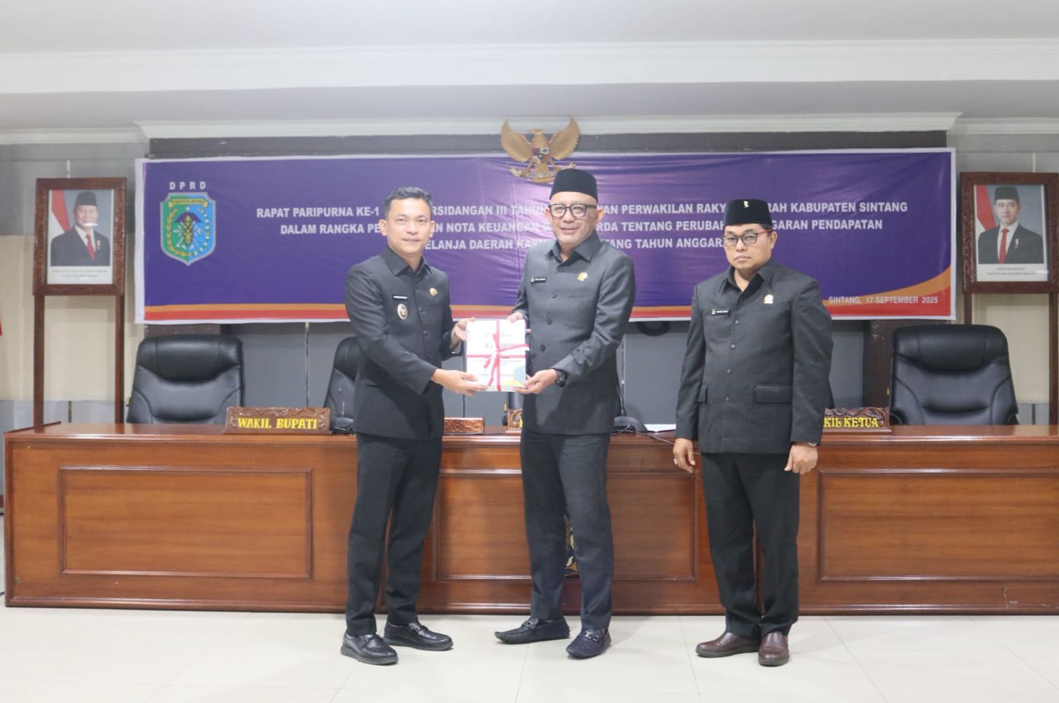 Rapat yang dipimpin Ketua DPRD H. Indra Subekti, A.Md., membahas penyampaian Nota Keuangan dan Raperda tentang Perubahan APBD Tahun Anggaran 2025. Hadir pula Wakil Bupati Sintang Florensius Ronny, Wakil Ketua I DPRD Yohanes Rumpak, S.Pd., M.M., Pasi Pers Kodim 1205/Stg Lettu Inf. Witono, perwakilan Kejari Sintang, unsur Forkopimda, pimpinan OPD, serta Anggota DPRD.