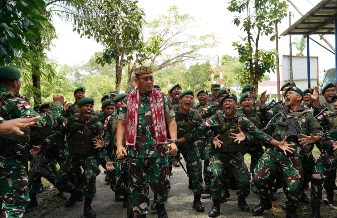 Mayjen TNI Jamallulael melihat langsung kondisi prajurit dan alat perlengkapan serta memberikan dukungan moril juga semangat dalam menjalankan tugas mengamankan perbatasan.