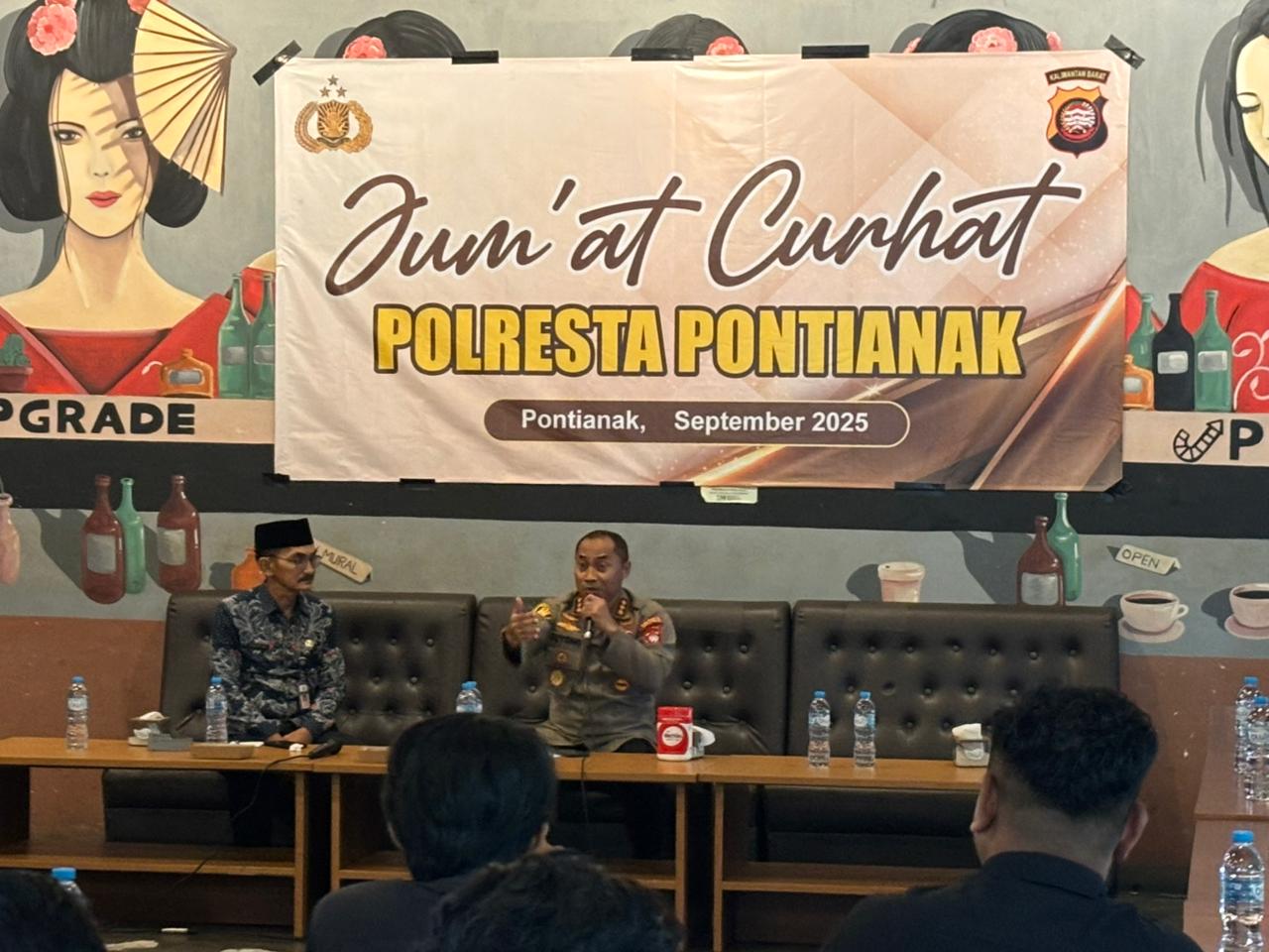 Pontianak – Kapolresta Pontianak, Kombes Pol Suyono, S.I.K., S.H., M.H., menggelar kegiatan Jum’at Curhat sebagai sarana dialog bersama masyarakat di Warkop Upgrade, Jalan Suprapto Pontianak Selatan, pada Jumat (19/09/2025).