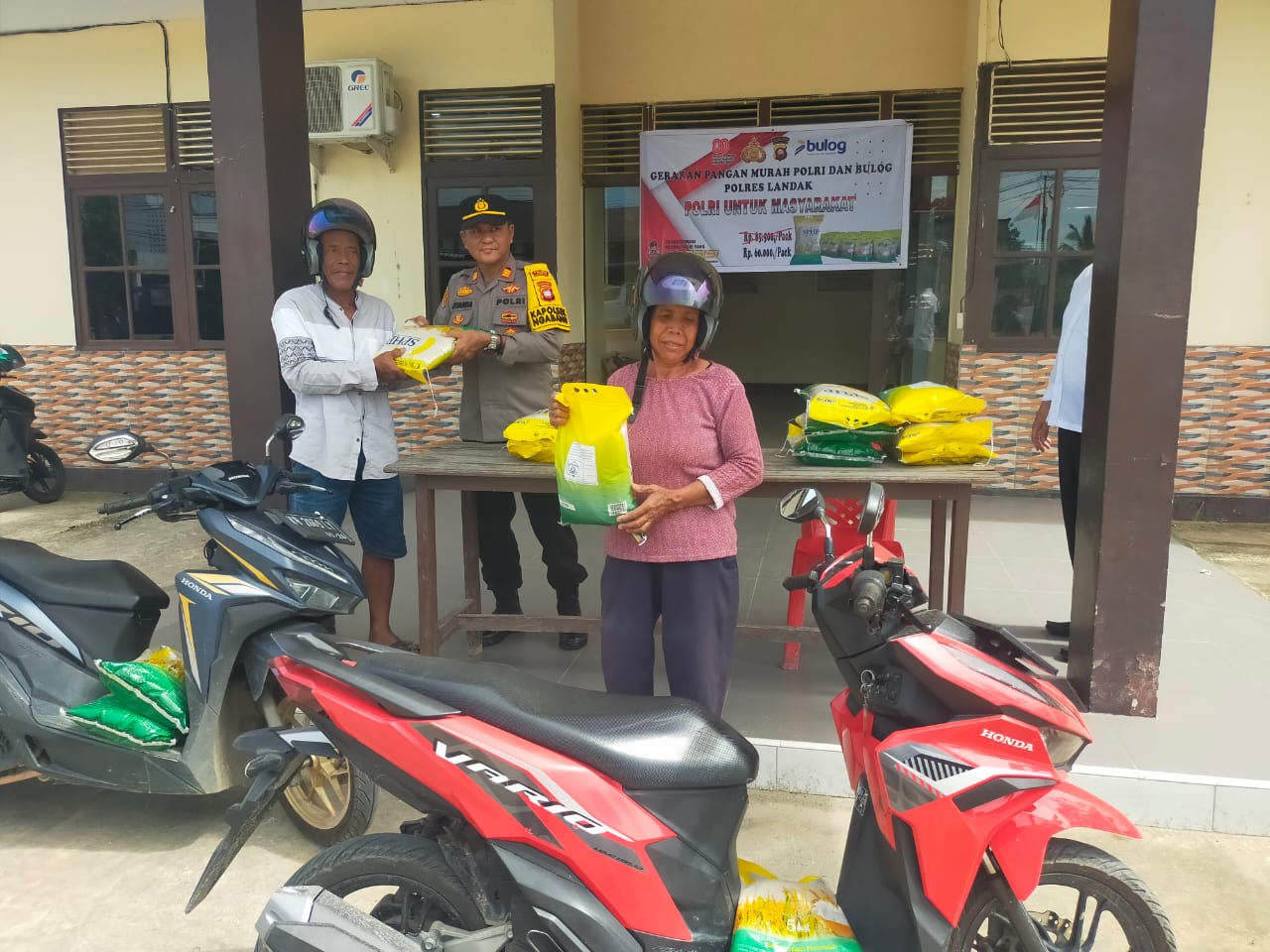 Landak – Tepat di halaman Polsek Ngabang sejak pagi dipadati puluhan warga yang rela mengantri demi mendapatkan paket kebutuhan pokok dengan harga terjangkau dalam program Gerakkan Pangan Murah (GPM) yang digelar oleh Polsek Ngabang Polres landak bekerjasama dengan Bulog. Senin (22/09/2025)