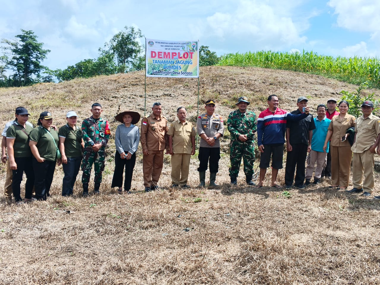 Hadir dalam kegiatan Penanaman Jagung Serentak 1 Desa 1 Hektar diantaranya Kapolsek Menyuke AKP ASWIN MAHAWAN S,H M,H, Danramil Menyuke Lontas Bangun, Bhabinkamtibmas Desa Songga Adrianus Vivi Miro, Kepala desa Songga Guntur S,pd, Ketua bundes bina mandiri Sumadi, Perangkat Desa 5 Orang dan Kadus Sedesa Songga.