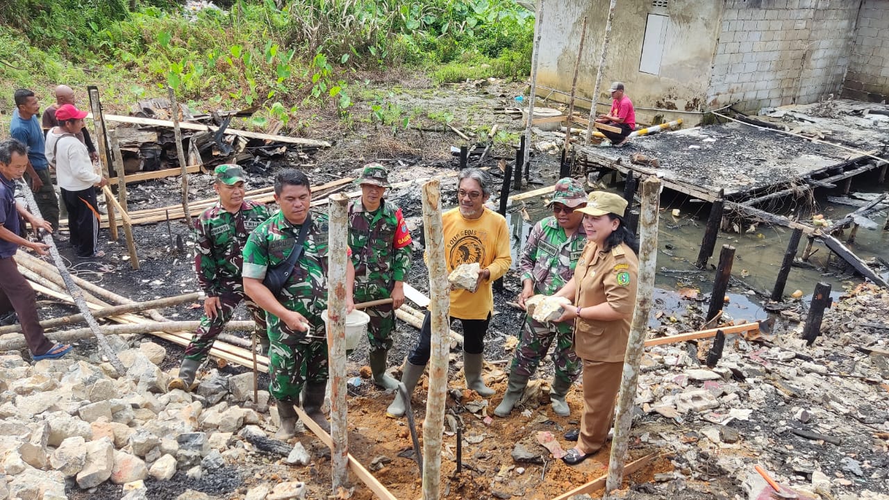 Gotong royong dilaksanakan dengan melibatkan Babinsa Koramil 05/Sml bersama masyarakat setempat, yang secara bersama-sama bangunan yang terbakar dan melakukan persiapan lahan untuk pembangunan rumah baru juga peletakan batu pertama. Kegiatan ini tidak hanya sebagai wujud dukungan moril, tetapi juga memberikan tenaga langsung dengan semangat kebersamaan yang tinggi. Pengerjaan berjalan dengan lancar berkat koordinasi yang baik antara TNI dan warga.