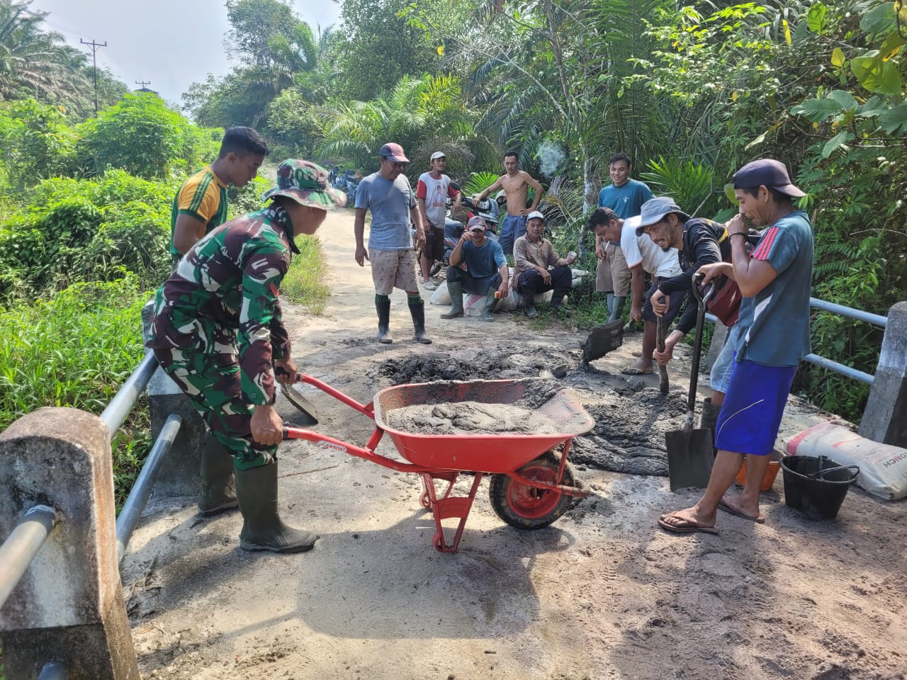 Babinsa bersama warga menunjukkan semangat kebersamaan dalam kerja bakti ini. Mereka bergotong royong membersihkan dan menyiapkan lokasi pengecoran agar proses pembangunan berjalan lancar. Keterlibatan Babinsa juga bertujuan memberikan motivasi serta memastikan keamanan dan ketertiban selama pelaksanaan kegiatan berlangsung.