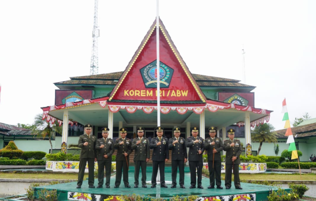 Sintang – Kasrem 121/Abw Kolonel Inf Dadang Ismail Marzuki, S.I.P., selaku Inspektur Upacara memimpin jalannya upacara Hari Kesaktian Pancasila, bertempat di lapangan Upacara Makorem 121/Abw, Sintang, Kalimantan Barat, Rabu (1/10/2025).