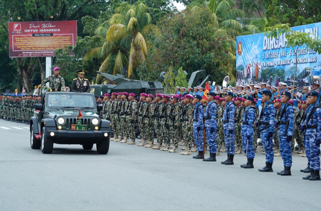 Pontianak – Puncak peringatan Hari Ulang Tahun (HUT) ke-80 Tentara Nasional Indonesia tahun 2025 ini, dirayakan oleh jajaran TNI di wilayah Kalimantan Barat dengan menggelar upacara dan syukuran, Minggu 05/10/2025.