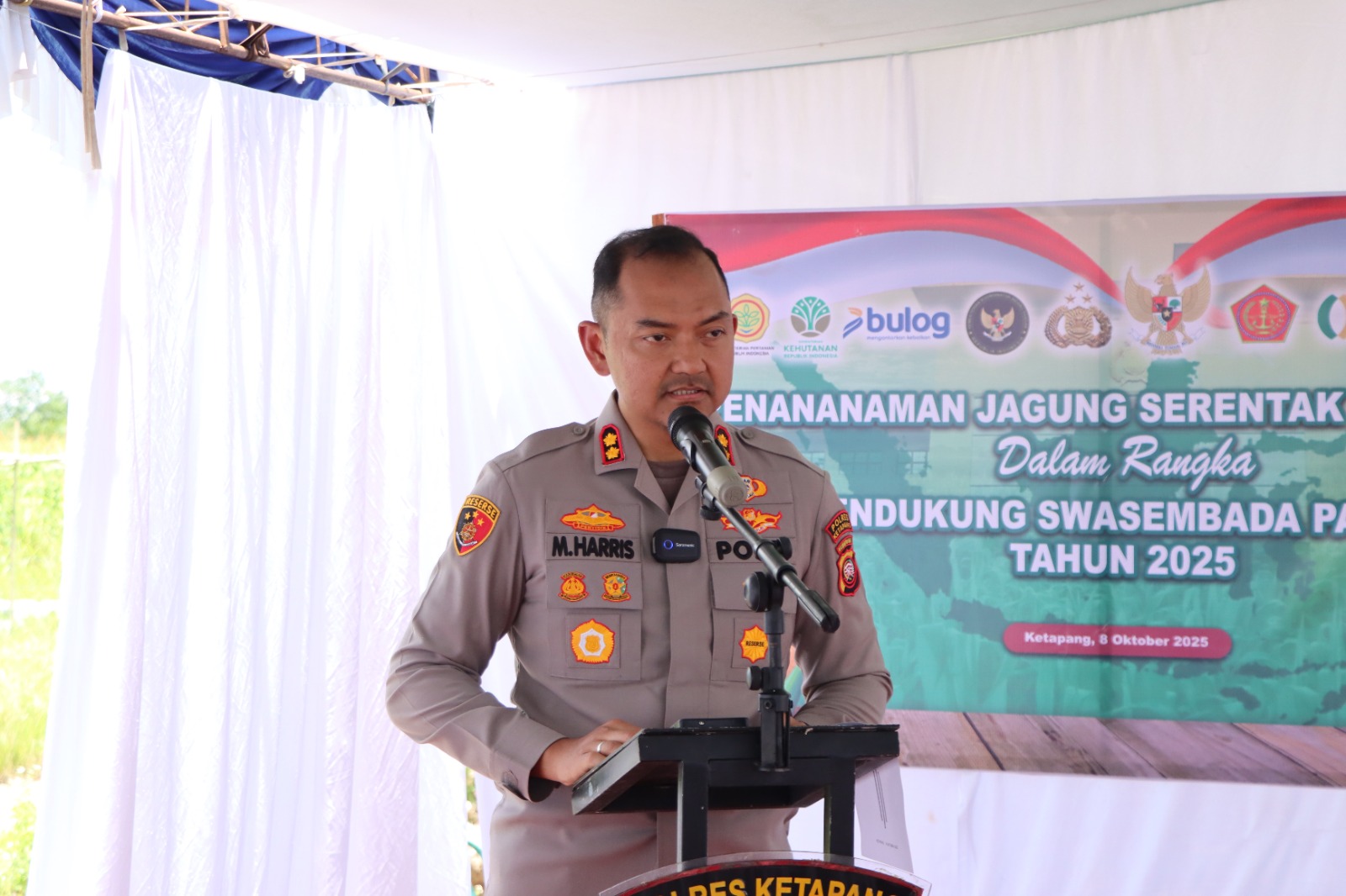 Dalam arahannya, Kapolres Ketapang menyampaikan bahwa penanaman jagung hibrida ini merupakan bagian dari program Polri dalam mendukung pemerintah memperkuat ketahanan pangan dan meningkatkan kesejahteraan masyarakat di sektor pertanian.