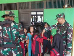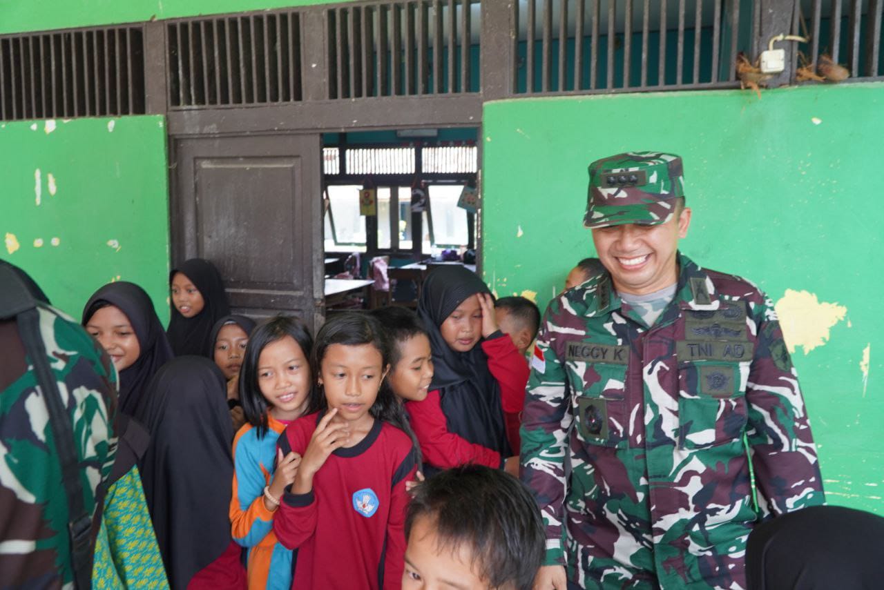 Siswa SD Sambut Hangat Kunjungan Kasi Ter Kasrem 121/Abw Di Lokasi TMMD Regtas Ke-126 Kodim 1208/Sambas