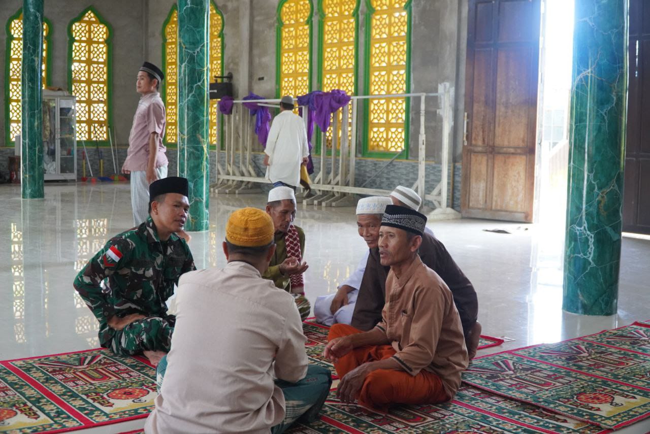 Sambas – Anggota Satgas TNI Manunggal Membangun Desa (TMMD) Reguler ke-126 Kodim 1208/Sambas melaksanakan kegiatan komunikasi sosial (komsos) bersama tokoh agama di lokasi pelaksanaan TMMD.