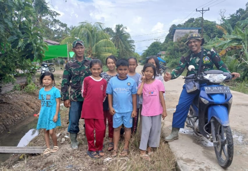 Satgas TMMD Regtas Ke-126 Kodim 1208/Sambas Jalin Keakraban Dengan Anak-Anak Desa Ratu Sepudak