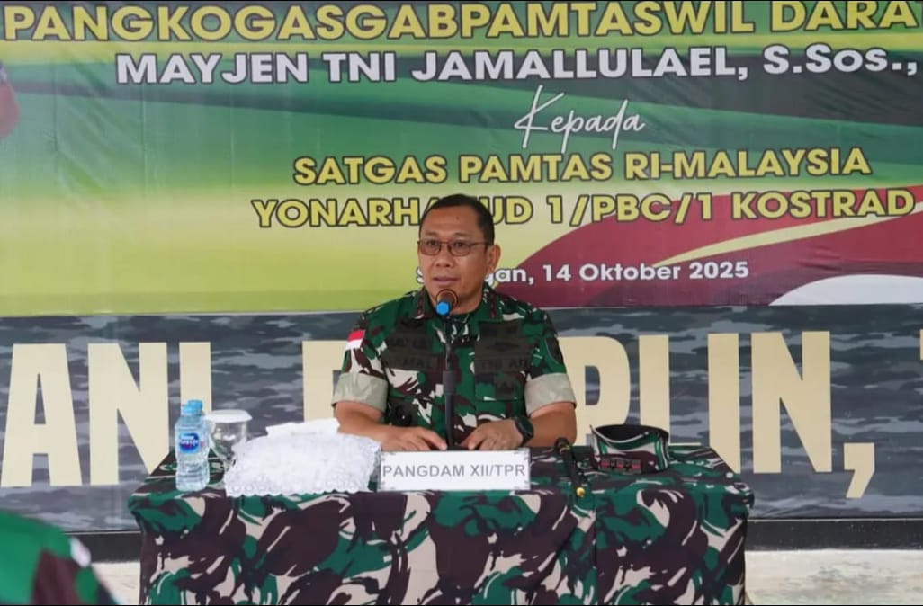 Saat memberikan pengarahan, Pangdam XII/Tpr Mayjen TNI Jamallulael menegaskan kepada personel Pos untuk melaksanakan tugas pokok dengan baik hindari pelanggaran sekecil apapun.