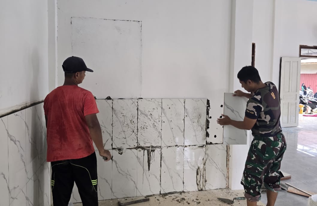 “Pemasangan keramik ini sudah hampir selesai, Dengan kondisi masjid yang lebih baik, diharapkan kapasitasnya bisa lebih banyak menampung jamaah dan lebih leluasa untuk digunakan dalam berbagai kegiatan ibadah”. Ungkap Dansatgas.