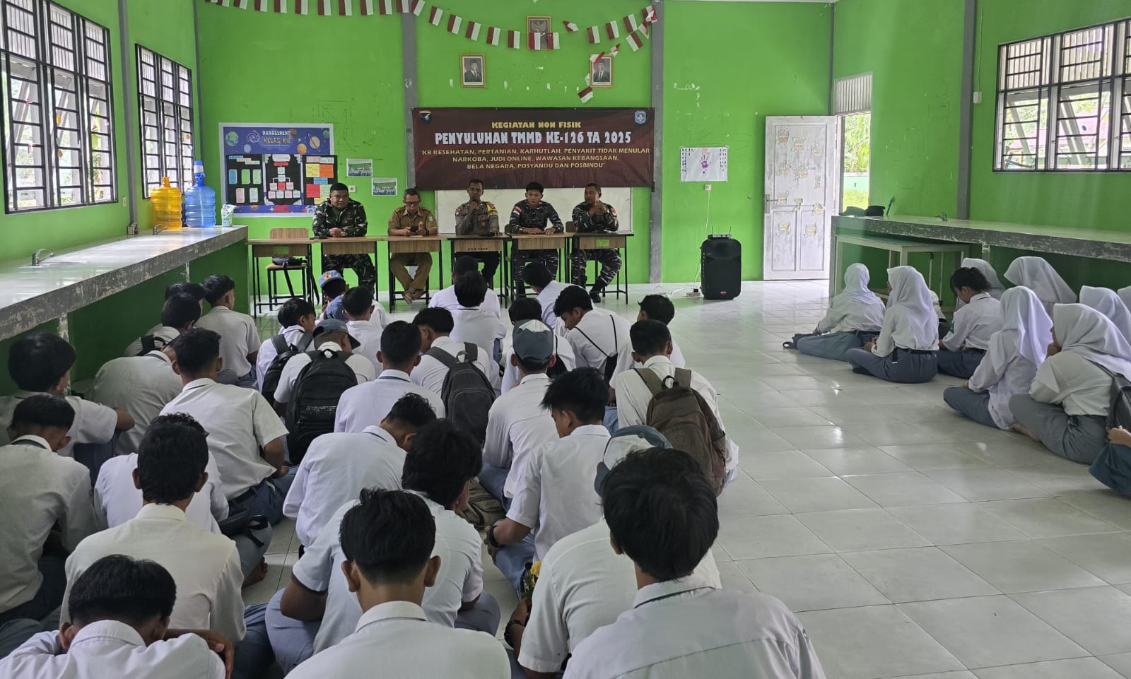 Pontianak – Satgas TMMD Ke 126 Kodim 1207/Pontianak Tahun 2025 Berikan Penyuluhan kepada Siswa – Siswi SMA N 3 Sungai Kakap. Bertempat di Jalan Parit Bujama Desa PAL IX Kecamatan Sungai Kakap Kabupaten Kubu Raya Prov. Kalimantan Barat, Senin (20/10/2025)