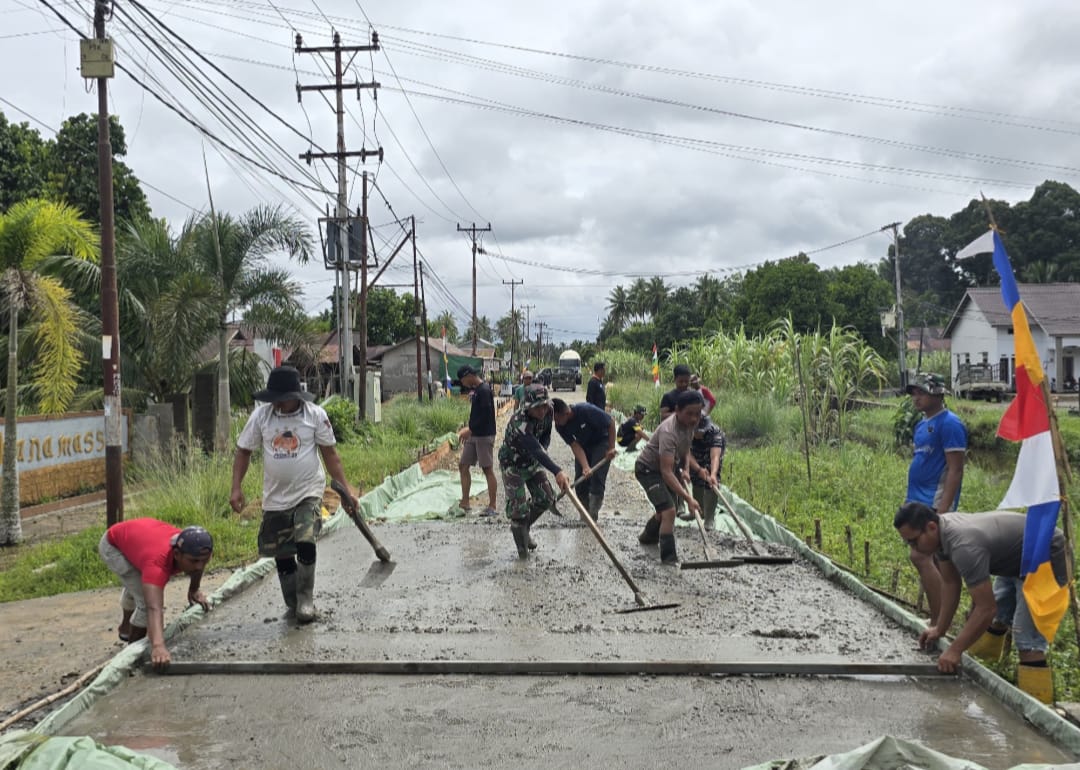 Pontianak – Warga dan Satgas TMMD Ke 126 Kodim 1207/Pontianak bergotong royong dengan antusias memasang papan mal sebagai bagian dari program pembangunan. Bertempat di Jalan Kalimas Hulu Desa PAL IX Kecamatan Sungai Kakap Kabupaten Kubu Raya Prov. Kalimantan Barat. Kamis (23/10/2025)