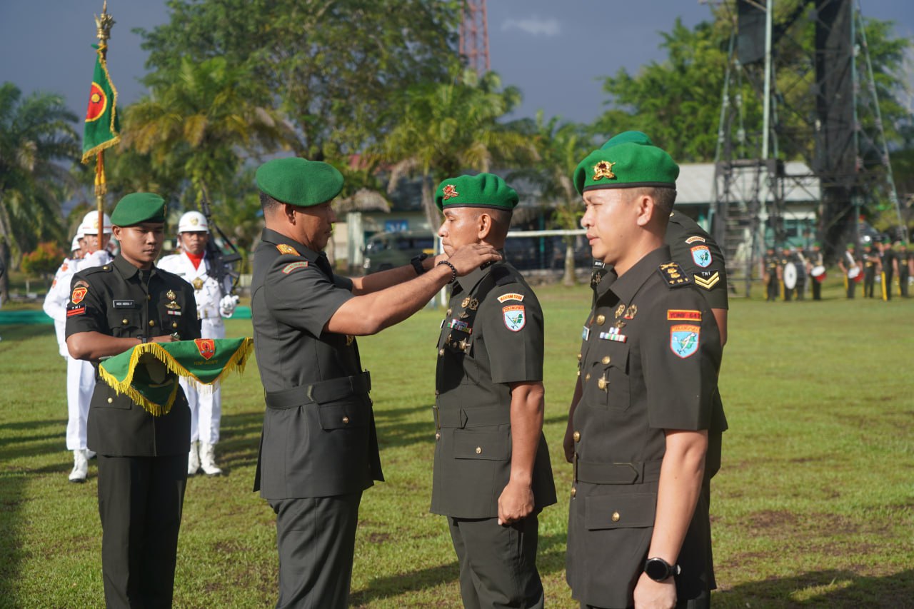 Sintang – Komando Resor Militer (Korem) 121/Abw menggelar upacara serah terima jabatan (Sertijab) Komandan Batalyon Infanteri (Danyonif) 642/Kapuas di Lapangan Upacara Yonif 642/Kps, Sintang, Kalimantan Barat, Sabtu (25/10/2025).