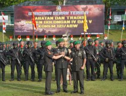 “Oleh karena itu, saya tekankan agar senantiasa yang Pertama pelihara dan tingkatkan moril serta disiplin prajurit. Kedua laksanakan pembinaan satuan secara menyeluruh, baik personel maupun materiil. Ketiga jalin sinergi dengan unsur pemerintah daerah, masyarakat, serta aparat kewilayahan. Keempat tegakkan sapta marga, sumpah prajurit, dan 8 wajib TNI dalam setiap pelaksanaan tugas,” Tegas Danrem.
