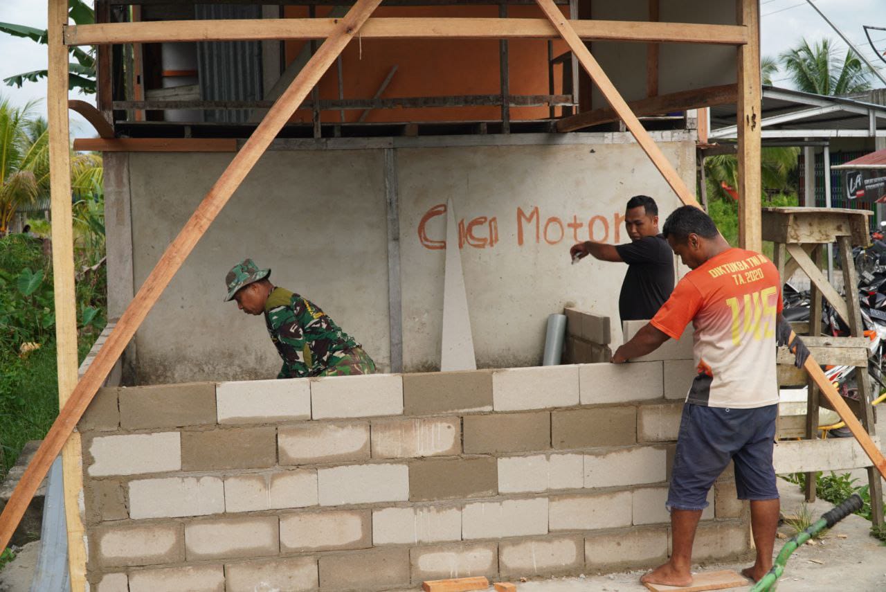 Sambas – Satgas TNI Manunggal Membangun Desa (TMMD) ke-126 Kodim 1208/Sambas terus menunjukkan kepeduliannya terhadap keamanan dan kenyamanan masyarakat. Kali ini, anggota Satgas bersama warga Desa Ratu Sepudak melaksanakan kegiatan rehabilitasi pos kamling yang berada di salah satu sudut Desa Ratu Sepudak, Minggu (26/10/2025).