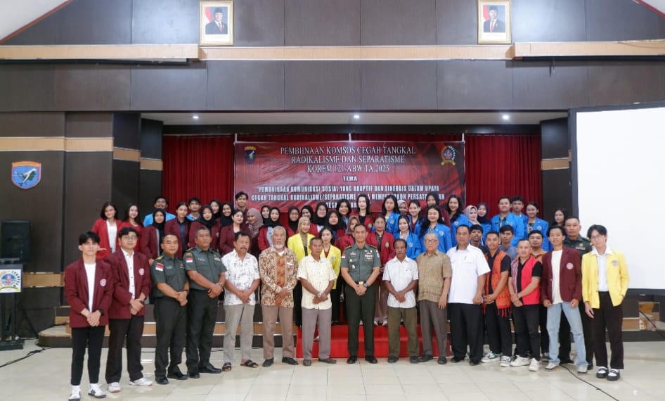 Sintang – Kasiintel Kasrem 121/Abw Kolonel Inf Alim Mustofa, mewakili Danrem 121/Abw Brigjen TNI Purnomosidi, S.I.P., M.A.P., M.Han., membuka kegiatan Komsos Cegah Tangkal Radikalisme/Separatisme wilayah Korem 121/Abw Tahun 2025, bertempat di Aula Korem 121/Abw, Sintang, Kalimantan Barat, Selasa (28/10/2025).