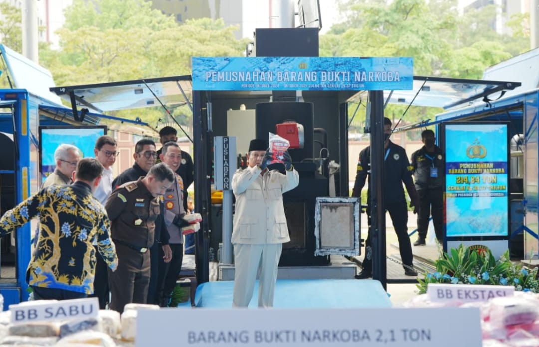 Pemusnahan barang bukti narkoba sebanyak 214,84 ton tersebut dihadiri langsung oleh Presiden Prabowo Subianto sekaligus memimpin pemusnahan barang haram tersebut di Lapangan Bhayangkara, Jakarta Selatan, Rabu (29/10/2025).