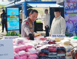 Jakarta – Polri menggelar kegiatan pemusnahan narkoba sebanyak 214,84 ton senilai Rp29,37 Triliun. Barang bukti berbagai jenis narkotika itu diperoleh dari hasil pengungkapan sepanjang satu tahun pemerintahan Presiden Prabowo Subianto.
